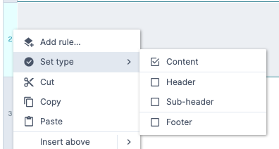 The four available types are: "Content”, “Header”, “Sub-header”, and “Footer.”