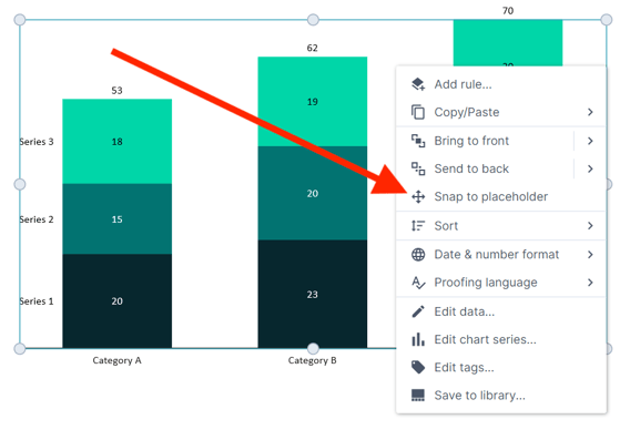 With Grunt-objects, you can right-click and use the "snap to placeholder" functionality to easily place charts and other graphics exactly where they belong in the template you're using.