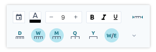 By clicking on the time/date axis, you will get a toolbox which enables you to do basic formatting, but also give you the ability to enable showing the year, quarters, months, weeks and even all the way down to granular dates if you wish to be very detailed in the schedule and calendar.